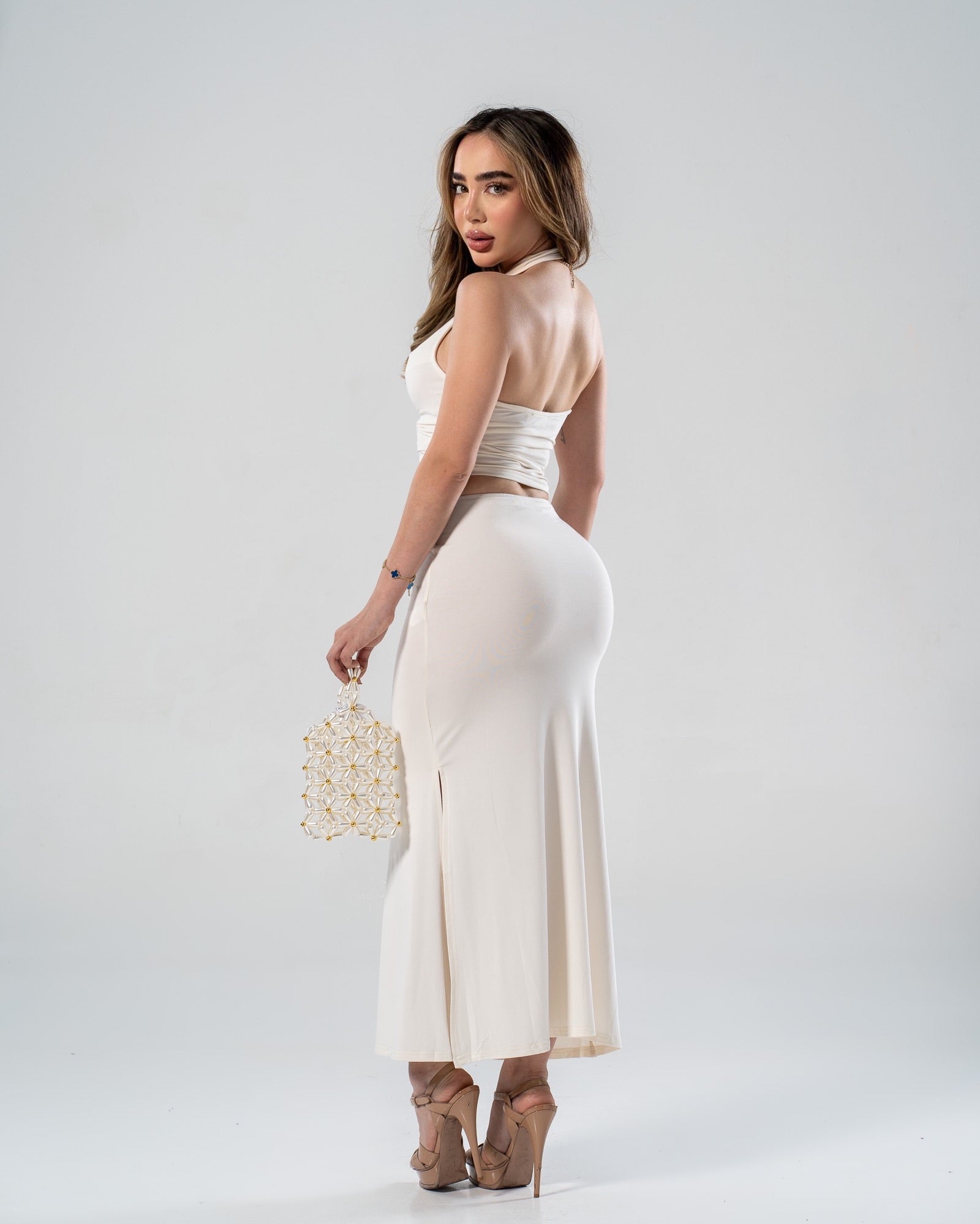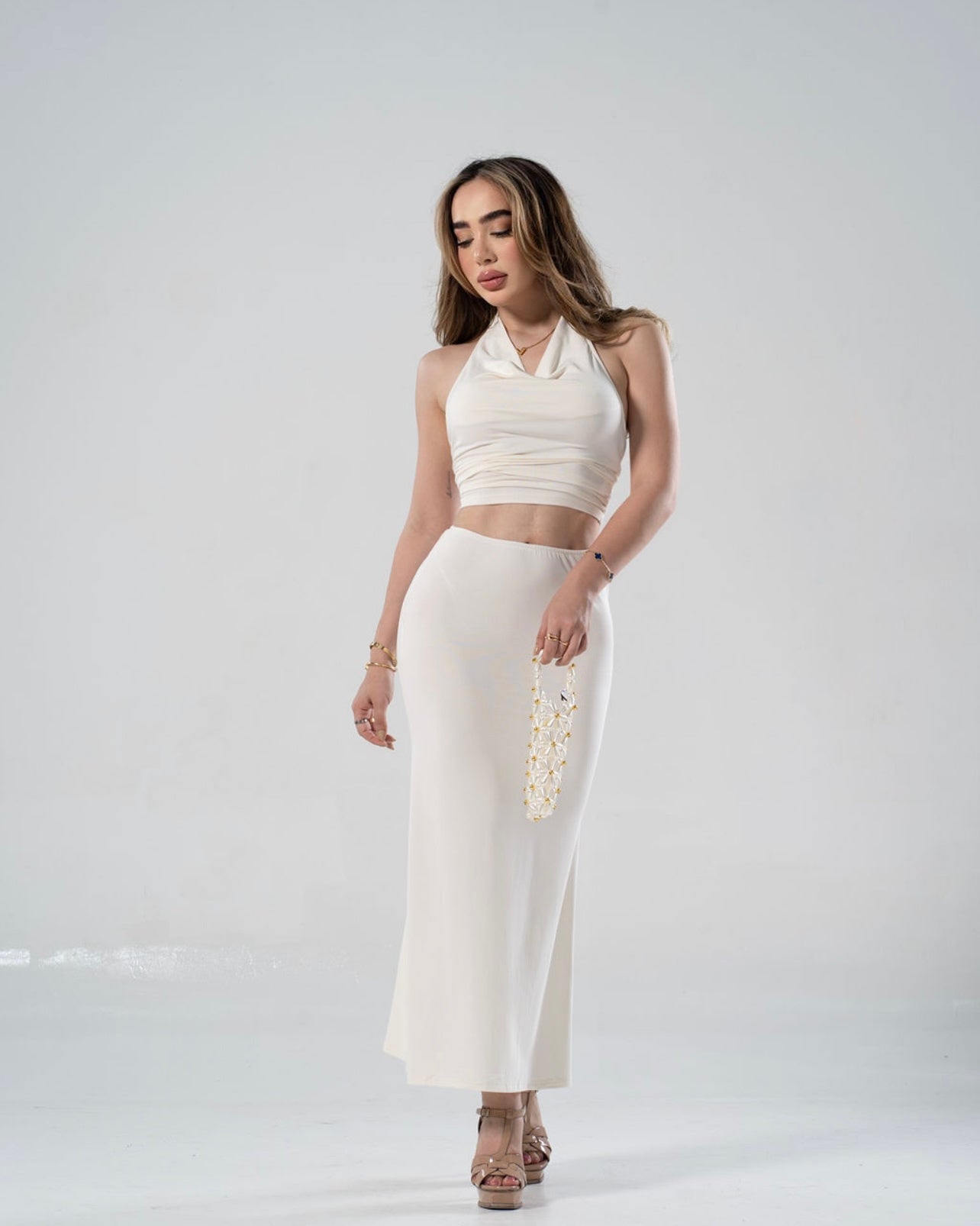 Set de 2 piezas: crop top y falda midi.