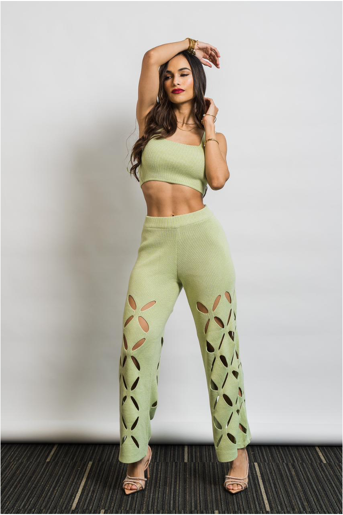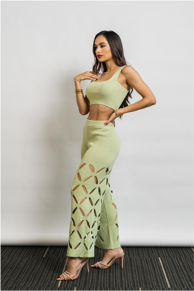 Set de dos piezas, crop top y pantalon.